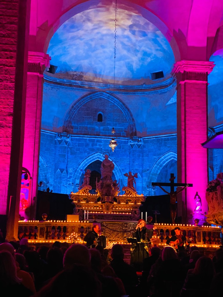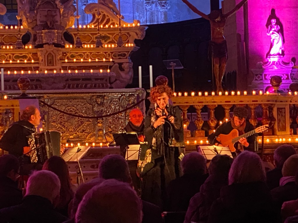 Ci sono donne capaci di illuminare i luoghi solo con la loro presenza. Ci sono artiste che con la loro voce sanno arrivare dalla terra al cielo. La luce, immagine che resta più vivida e impressa nella mente, alla fine di un concerto speciale che ha visto lei, Franca Masu, protagonista raffinata, trasmettere amore, fare vibrare ad unisono i cuori di tantissime persone arrivate anche dal sud dell’Isola fino ad Alghero, nella Cattedrale di Santa Maria, per ascoltarla. Ad accompagnare la cantante algherese, i suoi musicisti Fausto Beccalossi (accordeon), Luca Falomi (chitarra) e Salvatore Maiore (violoncello e contrabbasso). Canzoni che diventano preghiere.