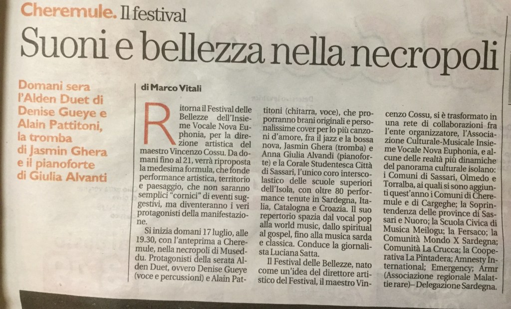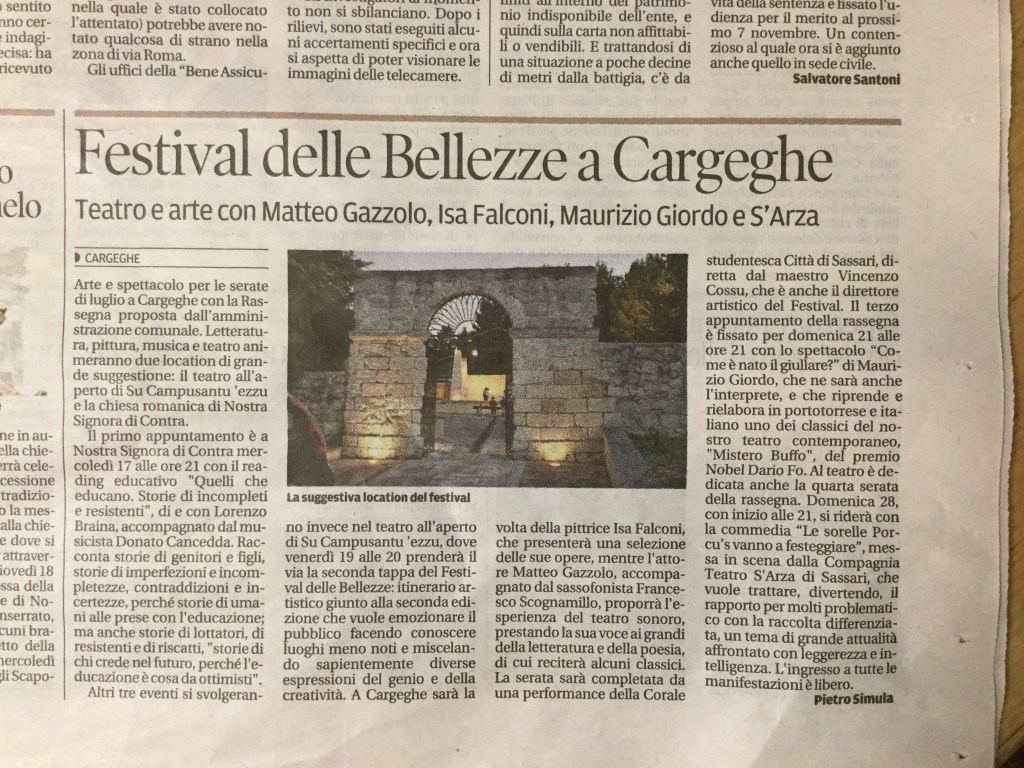 Dopo l’esperienza di quattro anni come responsabile dell’Ufficio Stampa del Festival Appetitosamente, a Siddi (dal 2013 al 2016, edizioni che hanno visto protagonisti Vinicio Capossela, Gavino Murgia, Noa, Nicola Piovani, Erri De Luca, Anna Tifu, i Tenore di Neoneli) sono stata, sin dalla prima edizione (dal 2018 e fino al 2021), responsabile dell’ufficio stampa del Festival delle Bellezze, che per quattro anni ho contribuito a realizzare. Mi sono occupata delle conferenze stampa, ho curato i rapporti con le testate giornalistiche e con gli artisti ospiti, ho creato le pagine social (Instagram e Facebook) e dal 2018 al 2021 ne ho curato i contenuti e i testi, ho condotto e realizzato le interviste e le scalette delle serate, ho collaborato all’organizzazione dell’evento e alla creazione degli speciali televisivi (andati in onda sull’emittente regionale Videolina e visibili nel sito web della testata).