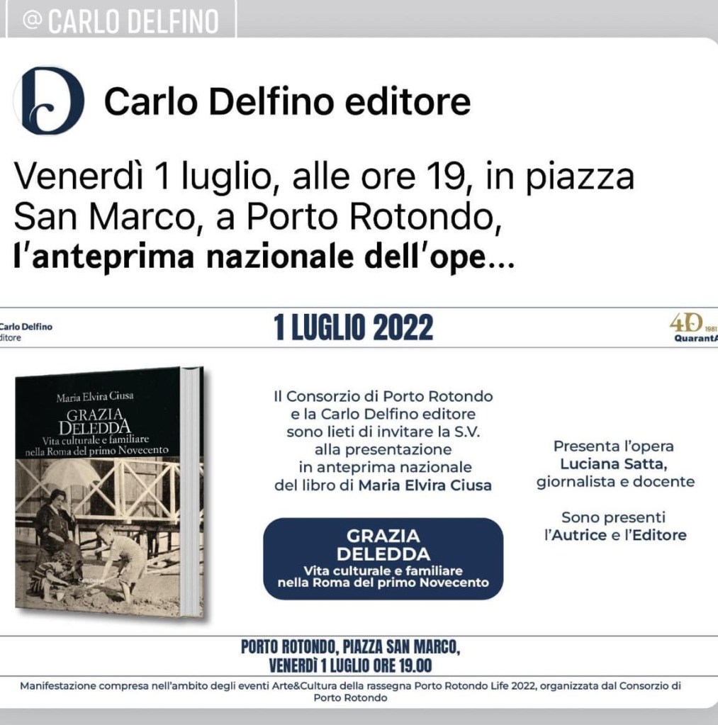 “Raccontare la vita di Grazia Deledda è stato come immergersi nel passato, nel mondo delle memorie e sondare le mie origini radicate in una terra che sin da bambina recepivo speciale”. (Maria Elvira Ciusa, “Grazia Deledda “Una vita per il Nobel”, Carlo Delfino editore)