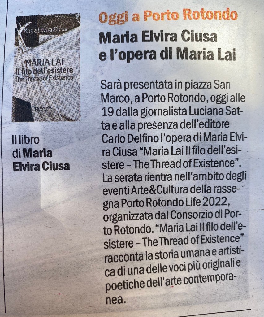 (Maria Elvira Ciusa,“Maria Lai – Il filo dell’esistere”, Carlo Delfino editore)