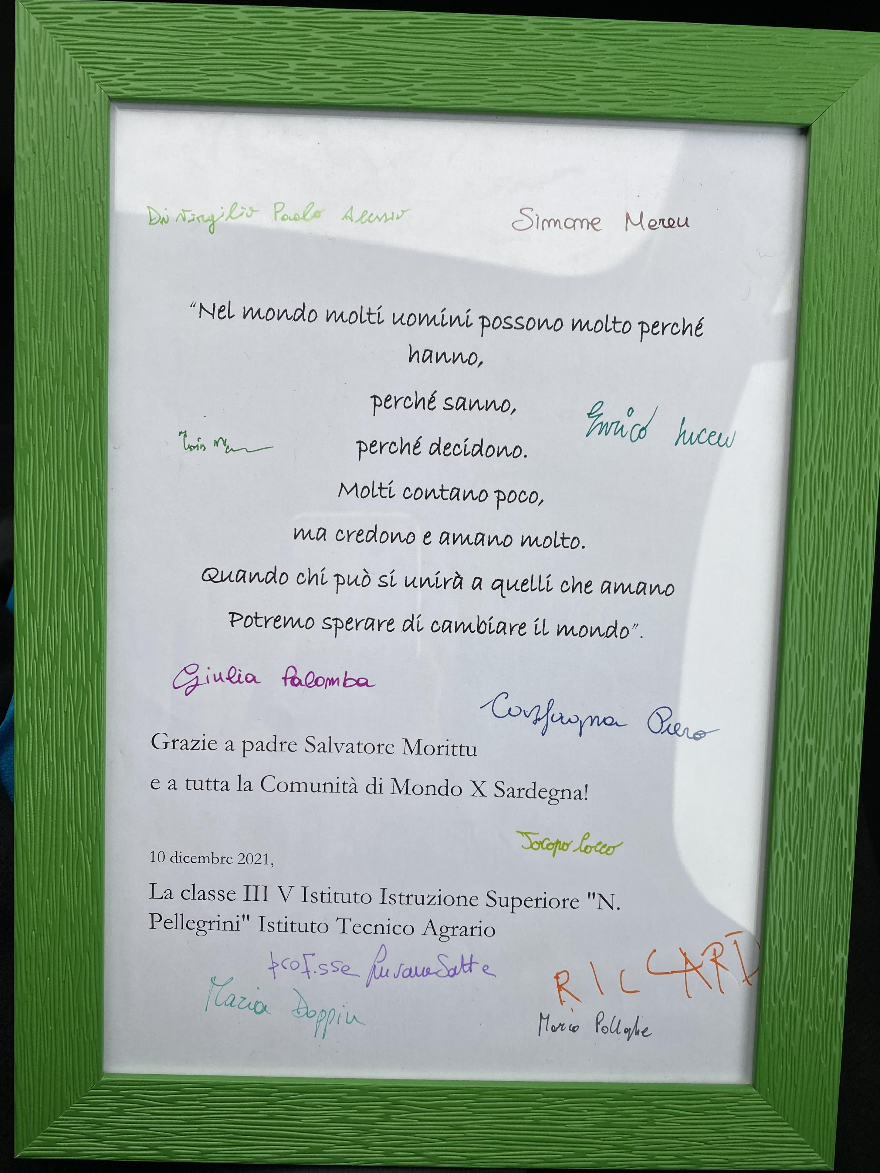 A mio avviso questo è il futuro vero dell’agricoltura: non soltanto luogo di produzione di beni primari, ma luogo di riflessione, di confronto tra il bene prodotto e i fruitori di questo bene che possono trovare un vantaggio più ampio unendo cultura e letteratura».
