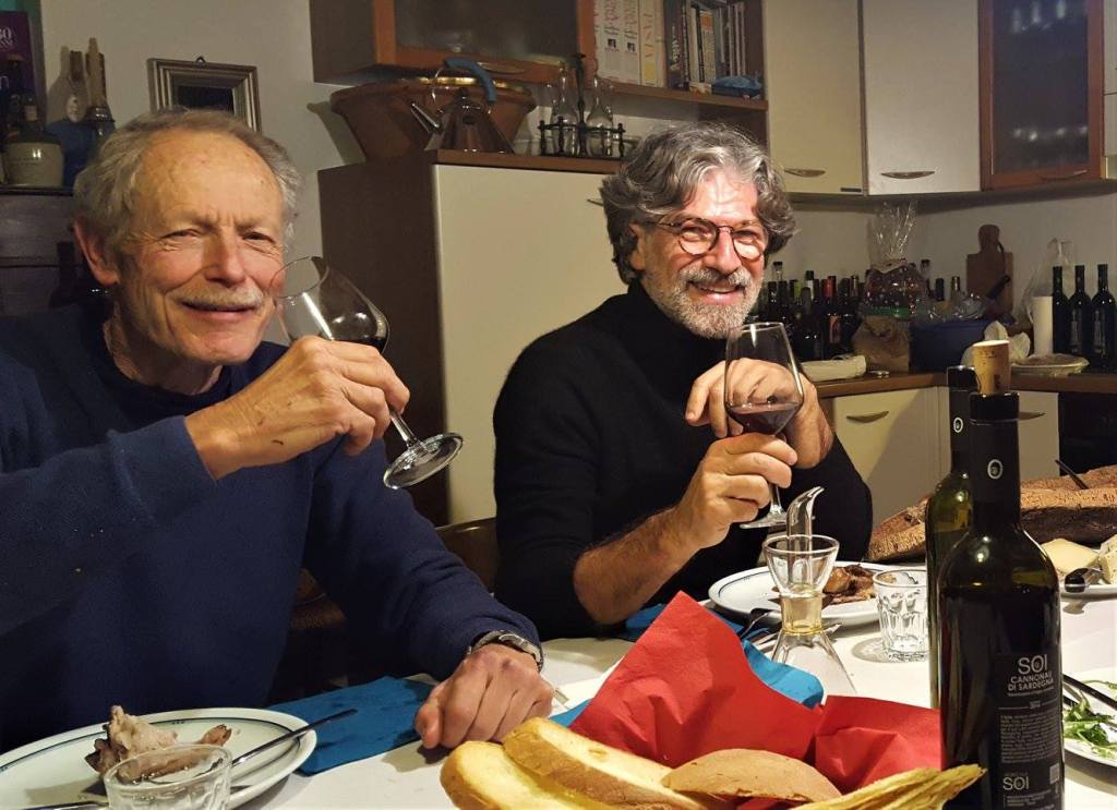 «Mauro è stato il primo con cui ho iniziato un rapporto di fratellanza. Ci chiamiamo “fratellini”, anche se lui è un po’ più grande di me. Ormai ci conosciamo da quasi venticinque anni e siamo diventati inseparabili. Non c’è stato un momento importante della nostra vita che non abbiamo condiviso insieme. Si cresce insieme, si invecchia insieme. Io ho la fortuna di ricevere spesso i suoi manoscritti prima che vengano pubblicati. Insieme a Mauro una sera di tanti anni fa sono andato a Belluno dove c’era una serata dedicata a Erri De Luca, del quale avevo letto solo il primo libro, perché lui non era ancora uno scrittore, era un operaio che cominciava a scrivere. È una persona con cui si è creato un rapporto incredibile, al punto che quando è morta sua mamma lui è venuto a casa mia, sentiva di rifugiarsi in un posto dove nessuno gli facesse domande, lo consolasse in maniera eccessiva, perché è una persona molto schiva, molto particolare. Sono stato più volte a casa sua, ho condiviso in parte anche le sue passioni politiche, anche se all’epoca non ci conoscevamo. Ho creduto che, in qualche modo, il mondo sarebbe potuto essere oggetto di miglioramento. Regolarmente – la gente non lo sa – Erri va in Ucraina per cercare di portare conforto. Sente l’esigenza di un ruolo sociale. Prima di conoscere Mauro Corona e Erri De Luca avevo già la casa piena di libri, da quando conosco loro ancora di più. Sono stato con Mauro una quindicina di volte al Premio Nonino, siamo stati al premio Strega, ho conosciuto grazie a lui quattro premi Nobel, siamo stati a Torino, a Francoforte, a Gavoi… ho fatto con loro delle cose meravigliose, fino a quando ho avuto il coraggio (e spesso questo mi manca) di separarmi da quel mondo. Abbiamo vissuto un periodo magico, però poi il richiamo della terra è stato forte, ci vediamo periodicamente e non più a livello settimanale, come accadeva prima. È un rapporto meraviglioso (sono citato anche nell’ultimo libro di Erri, Spizzichi e Bocconi, n.d.r.) e a volte Mauro mi ha usato come personaggio di qualche sua storia. È un rapporto che mi gratifica moltissimo, penso anche di non meritarlo, ma è andato così».